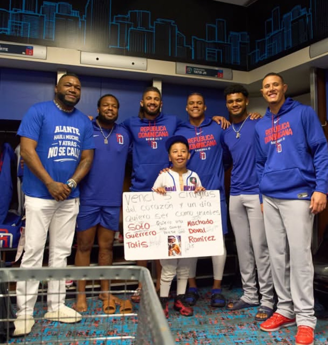 MIAMI. El niño Jean Lucas logró conocer a varios jugadores de la Selección de Béisbol de la República Dominicana que participa en el Clásico Mundial de Béisbol 2026, al acercarse con una pancarta en la que contó parte de su historia de superación tras haber vencido cinco cirugías del corazón.