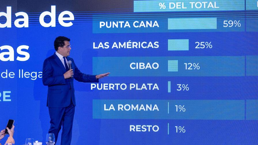 Los aeropuertos que más turistas recibieron fueron Punta Cana con 59 %, Las Américas con 25 %, Cibao con 12 %, Puerto Plata 3 % y un 1% La Romana y otros.