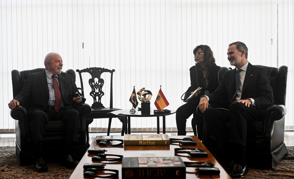 En la reunión con Felipe VI, que tuvo lugar en el Palacio de Itamaraty, sede de la Cancillería, también participaron la vicepresidenta española Yolanda Díaz y el ministro de Asuntos Exteriores del país europeo, José Manuel Albares.