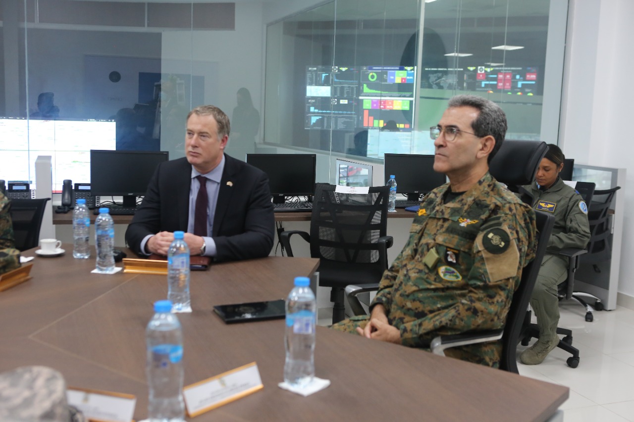 Narcotráfico, contrabando, seguridad fronteriza y flujos migratorios irregulares, fueron algunos de los temas analizados en la reunión de alto nivel, que tuvo lugar entre en el Centro de Comando, Control, Comunicaciones, Computadoras, Ciberseguridad e Inteligencia (C5i) del Ministerio de Defensa (MIDE).