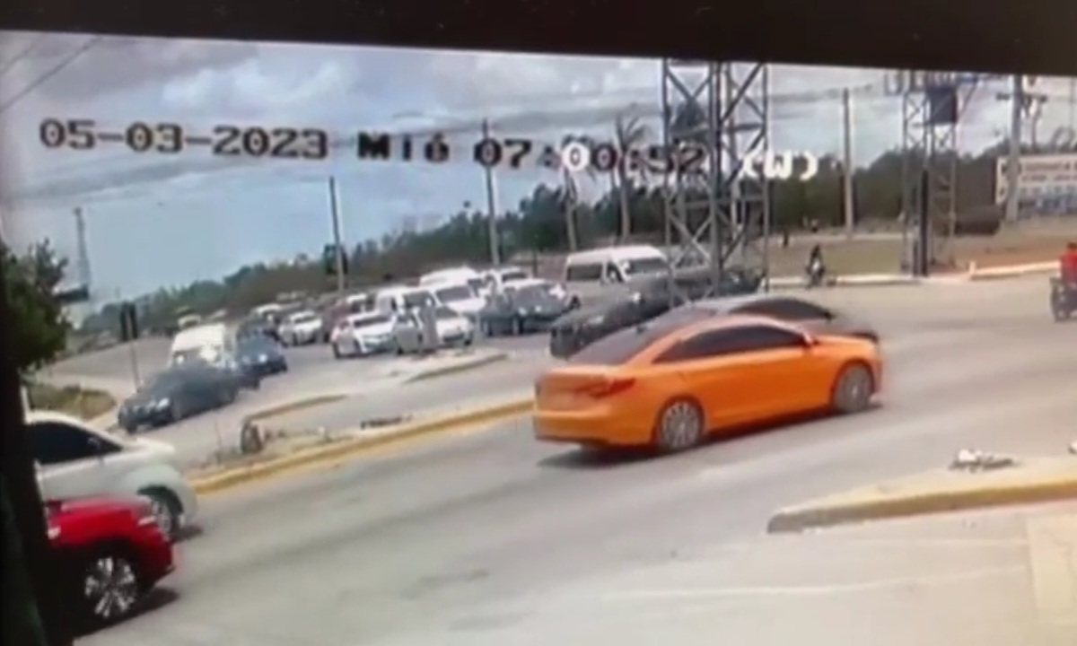 Bávaro. Quedó captado en un video el momento en que sucedió el accidente de tránsito ocurrido la tarde de este jueves, en el cruce de Friusa, Bávaro.