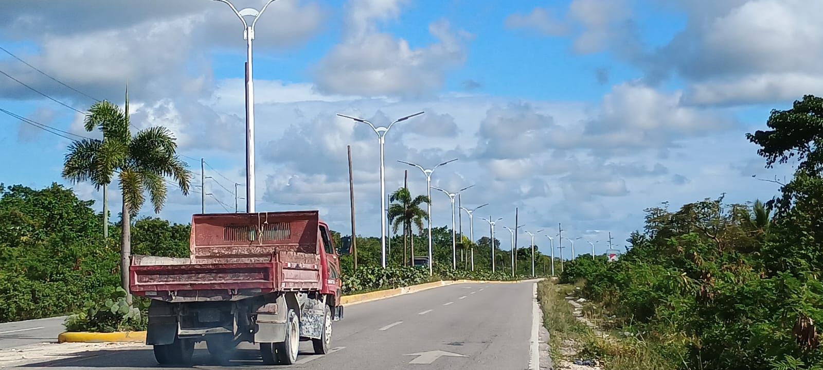 Verón, La Altagracia. Los trabajos de instalación del sistema de alumbrado público en la Circunvalación Verón–Bávaro avanzan de manera sostenida, con la colocación de modernas luminarias que buscan mejorar la visibilidad y la seguridad vial en esta importante vía.