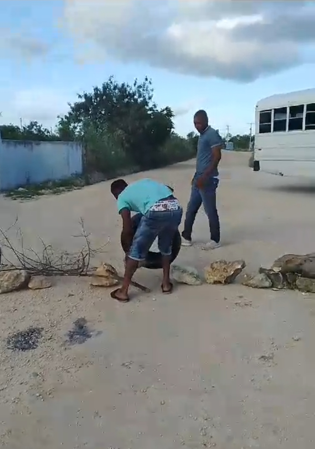 A pesar de haber cerrado el paso, una guagua cruzó sin importar que hubiera personas en los alrededores. El camión, de igual modo, pasó.