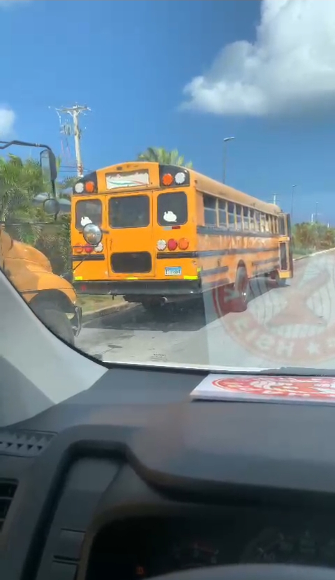 Tras el choque el afectado inició una persecución contra la guagua hasta llegar a uno de los hoteles de la zona. Según muestra en el vídeo la guagua amarilla tiene secuelas del supuesto accidente.