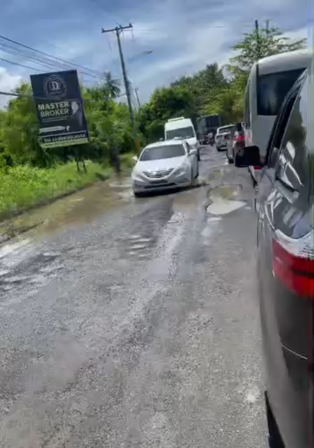 Según la denuncia de una lectora, la carretera permanece «mojada» de forma constante, y el asfalto se va deteriorando cada día más debido a las aguas estancadas. Esta situación no solo afecta la circulación, sino que también representa un peligro para los conductores.