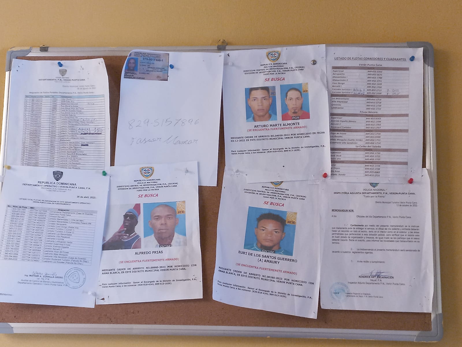 Las muertes ocurrieron entre diciembre del 2022 y febrero del 2023. Aún en uno de los murales del destacamento de la Policía Nacional permanecen las caras de las personas que se supone ‘están siendo perseguidas’ por dichos homicidios.