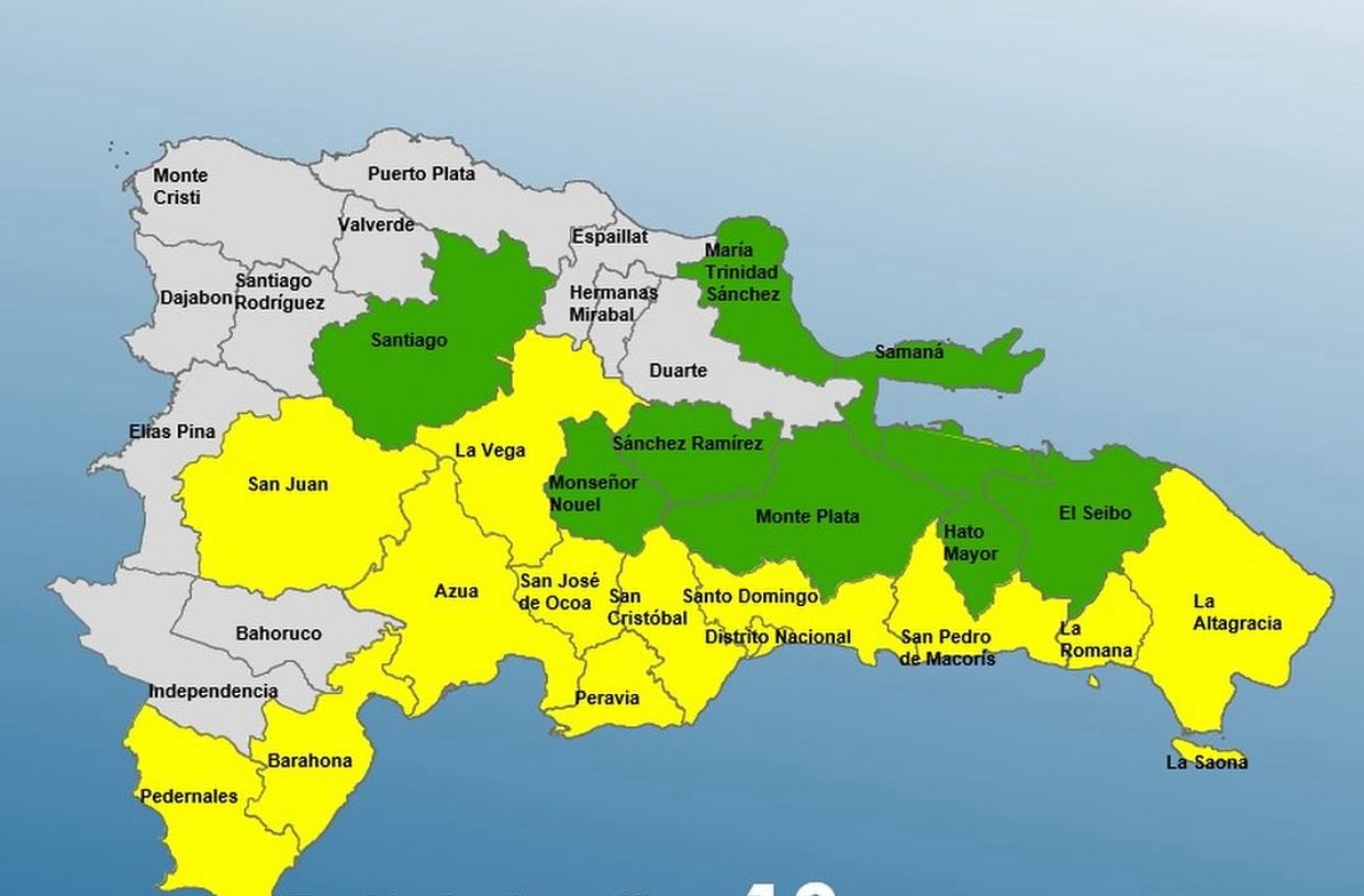 Ante la evolución del fenómeno, el Centro de Operaciones de Emergencias (COE) elevó los niveles de alerta en varias zonas del país, colocando 12 provincias y el Distrito Nacional en alerta amarilla, mientras que otras 8 permanecen en verde.