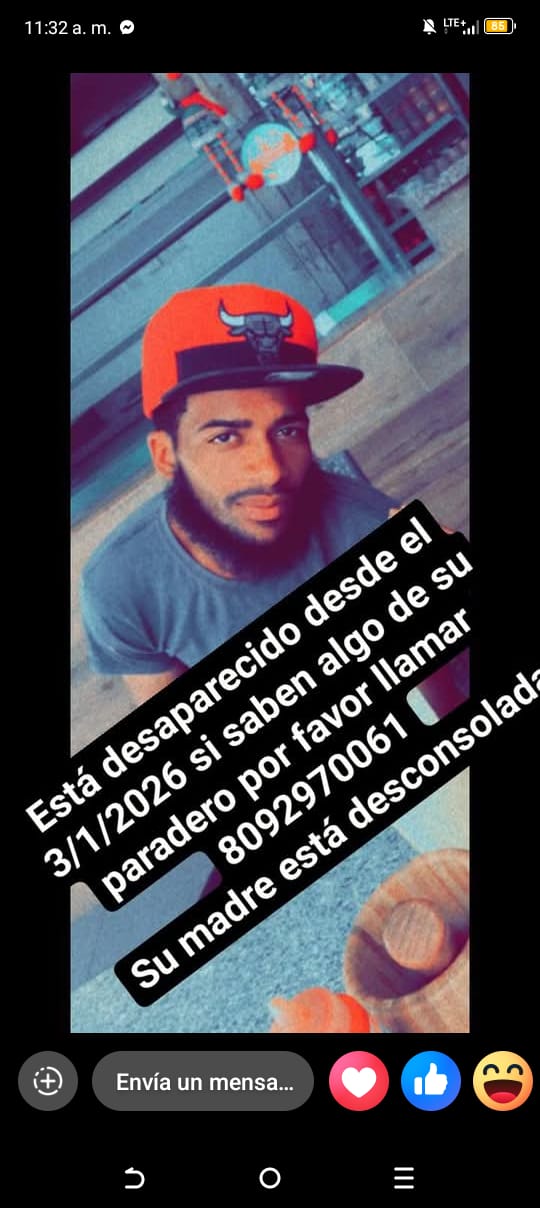 Higüey, La Altagracia. Fue denunciada la desaparición de Aneury Carela, un joven de 31 años, oriundo del municipio de Higüey, quien salió de su residencia con destino a Verón para vender dos sacos de jengibre y desde entonces se desconoce su paradero.