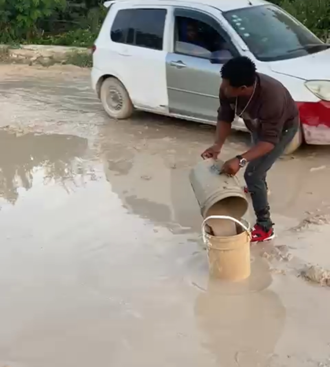 La acción, realizada en conjunto por los residentes busca evitar que el Ministerio de Obras Públicas use la inundación como excusa para no asfaltar la zona, según expresaron los comunitarios.