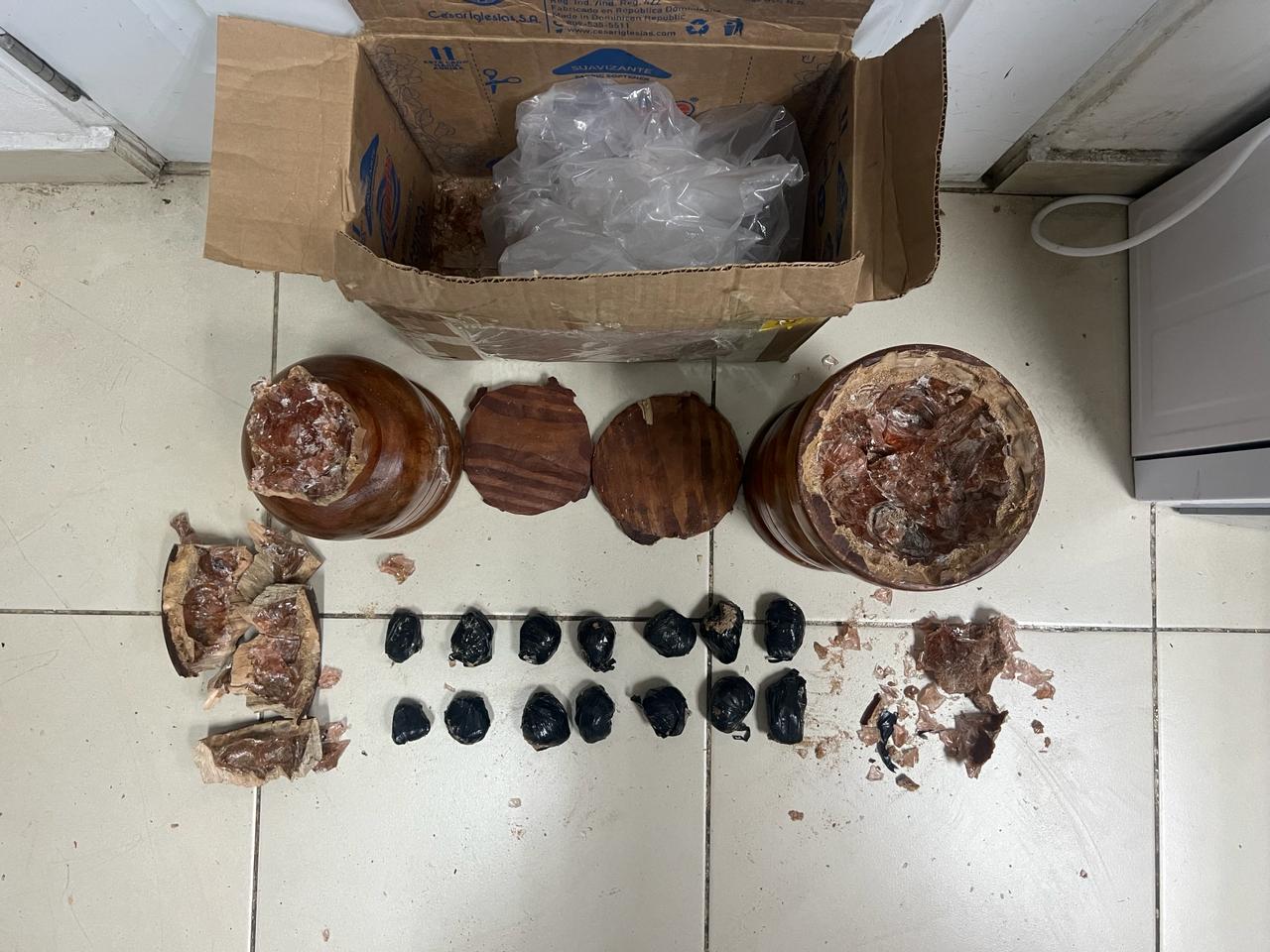 Los agentes antinarcóticos y fiscales, se trasladaron a los depósitos de una empresa, ubicada en el Distrito Nacional, donde realizaron labores de inspección en una caja, en cuyo interior confiscaron dos pilones, conteniendo ocultos entre la madera, 14 porciones de cocaína, con un peso aproximado a los 200 gramos.