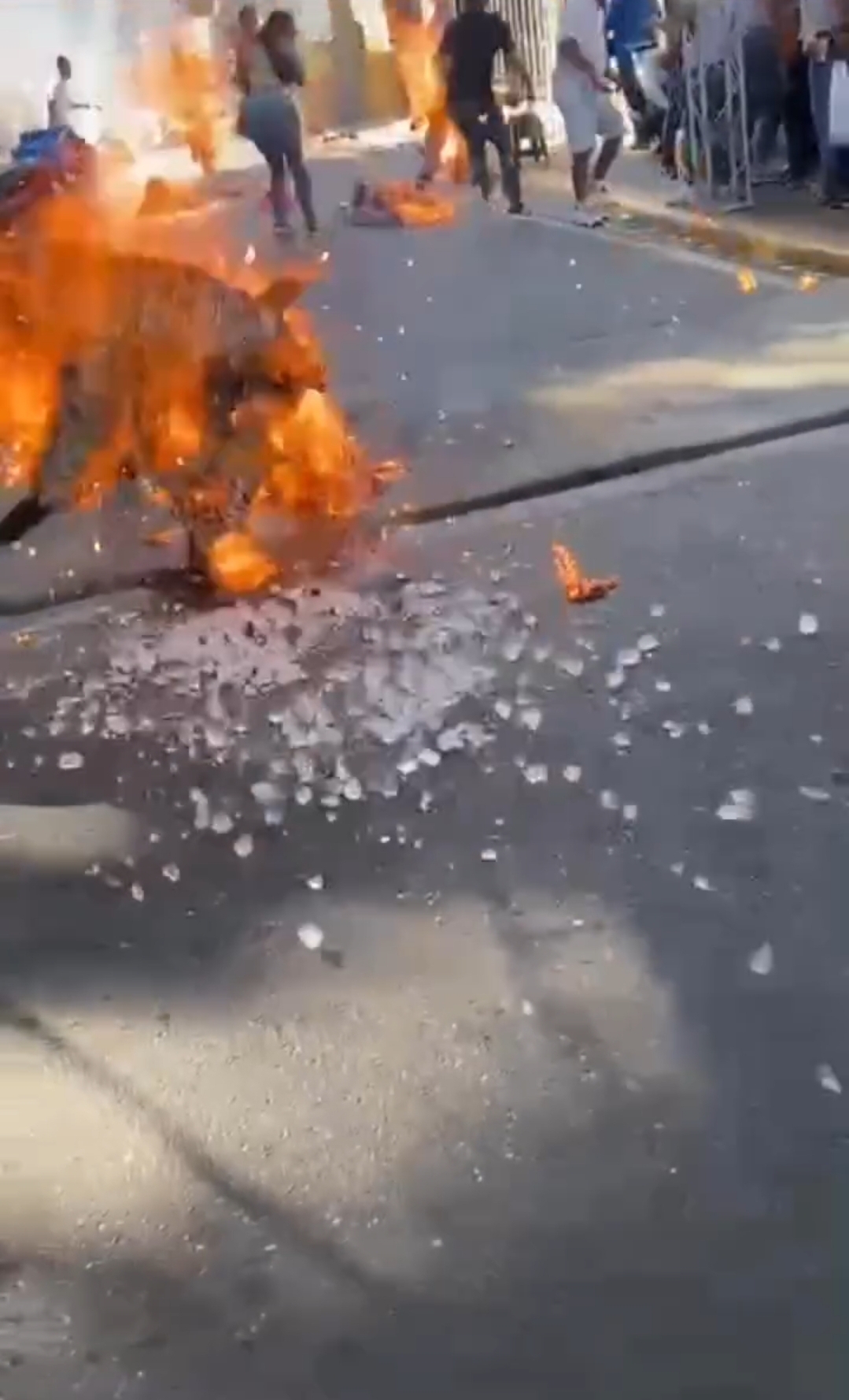 Salcedo. Quedo captado en videos e imágenes el momento en que un grupo de personas resultaron quemadas en el cierre del Carnaval de Salcedo 2024.