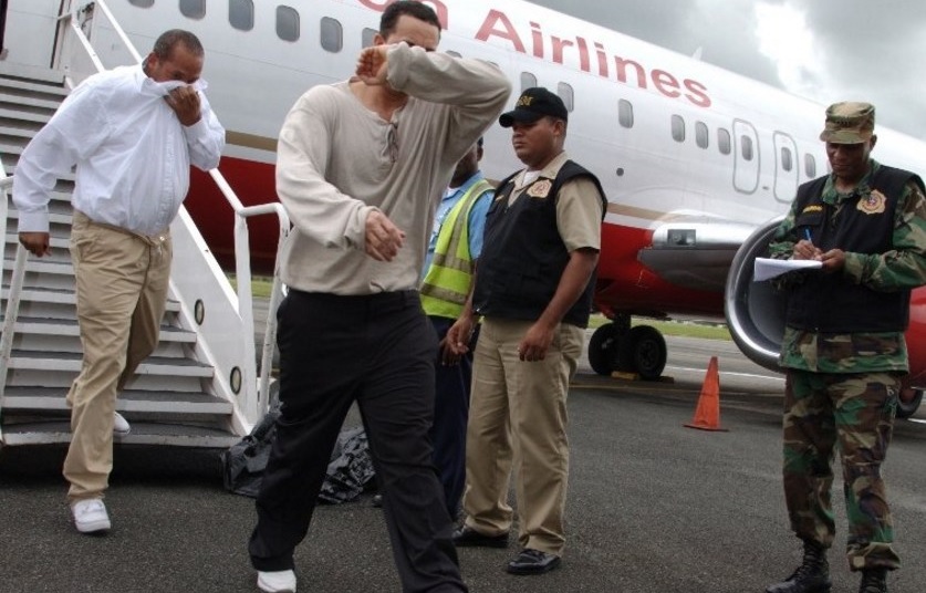 El vuelo, proveniente del estado de Luisiana, aterrizó a las 11:19 de la mañana en la terminal de Las Américas. Allí, un contingente de agentes policiales y de seguridad realizó un despliegue especial para garantizar el control durante el proceso de recepción en la rampa noroeste del aeropuerto.