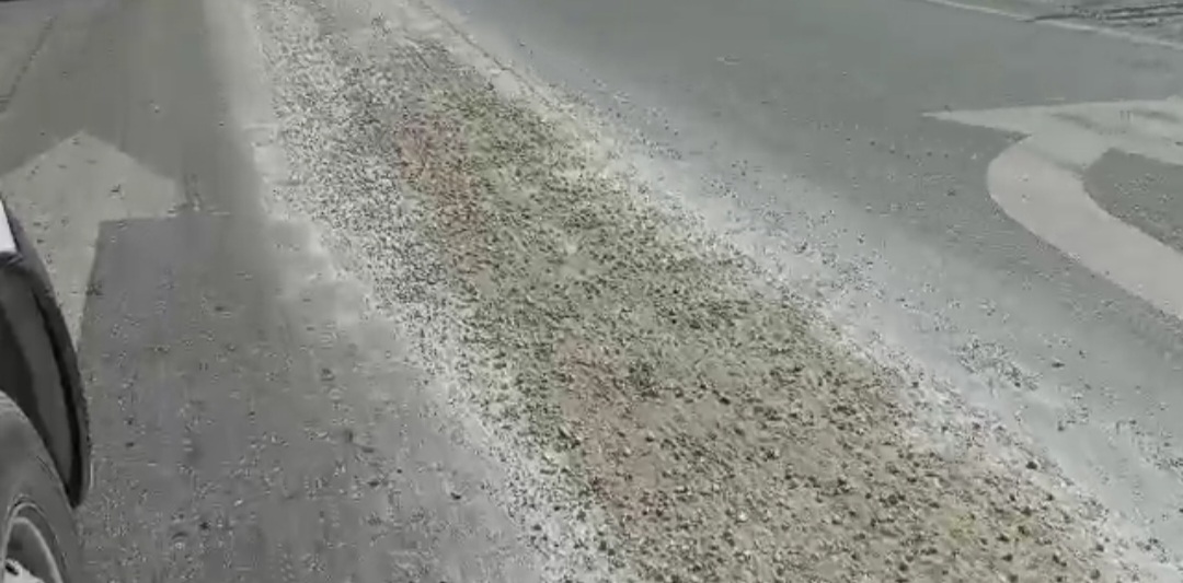 El tramo arruinado fue el que va desde Friusa a Verón, en el mismo semáforo de Coco Loco. Allí la cantidad material se ve desparramado en todo el lateral de la vía.