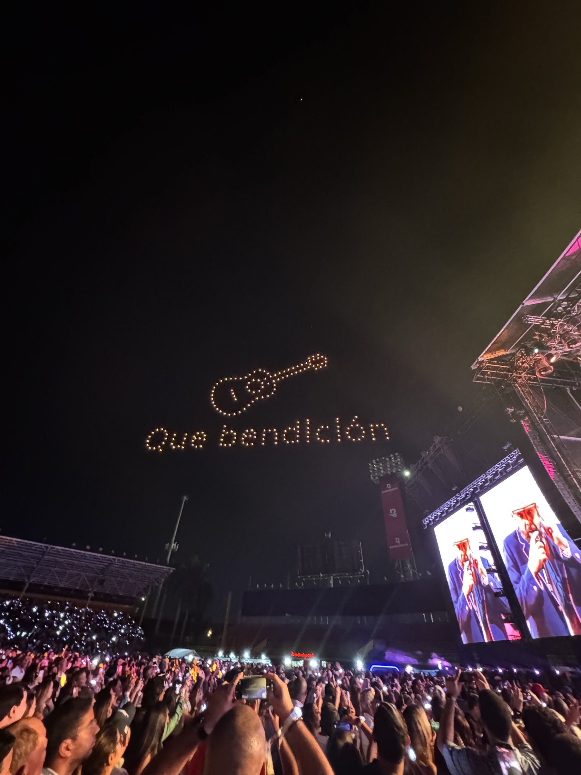 El concierto incluyó un espectáculo visual con drones que proyectaron figuras alusivas a canciones del repertorio, mientras el artista realizó varios cambios de vestuario durante la noche.
