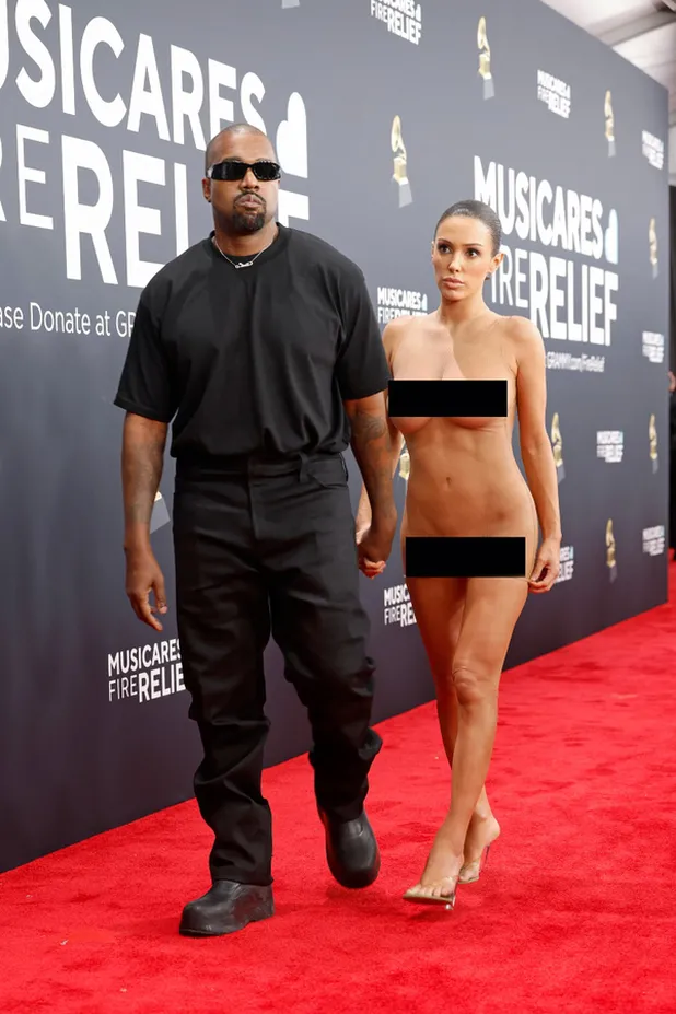 Ambos llegaron a la alfombra roja luciendo una vestimenta a juego de color negro: Kanye con una camiseta y pantalones oscuros, además de unos lentes de sol; y Bianca con un abrigo chic que se quitó a los segundos para mostrar un vestido transparente que la dejó prácticamente al desnudo ante los fotógrafos y los presentes en el evento.
